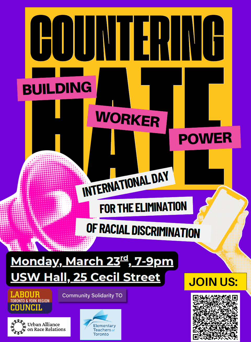 Join the Toronto & York Region Labour Council, the Urban Alliance on Race Relations, Community Solidarity Toronto, and allies from Toronto City Council and community in an important discussion to mark the International Day for the Elimination of Racial Discrimination.