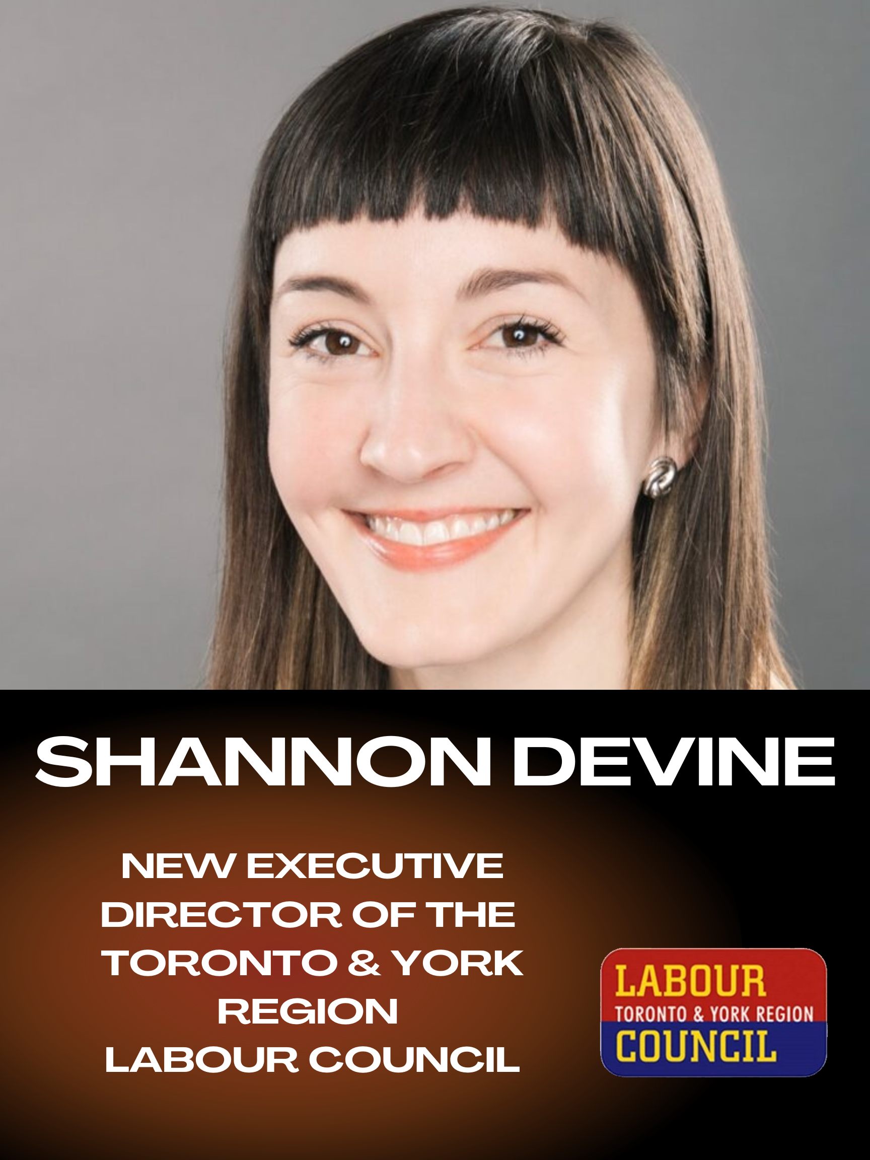 Shannon Devine will be joining the Toronto & York Region Labour Council as our new Executive Director.