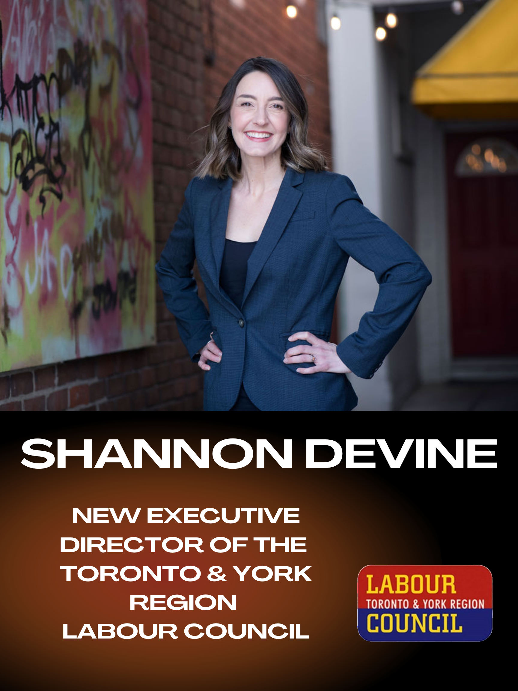 Update Shannon Devine Named New Executive Director Shannon Devine will be joining the Toronto & York Region Labour Council as our new Executive Director. Geordie Dent April 13, 2026