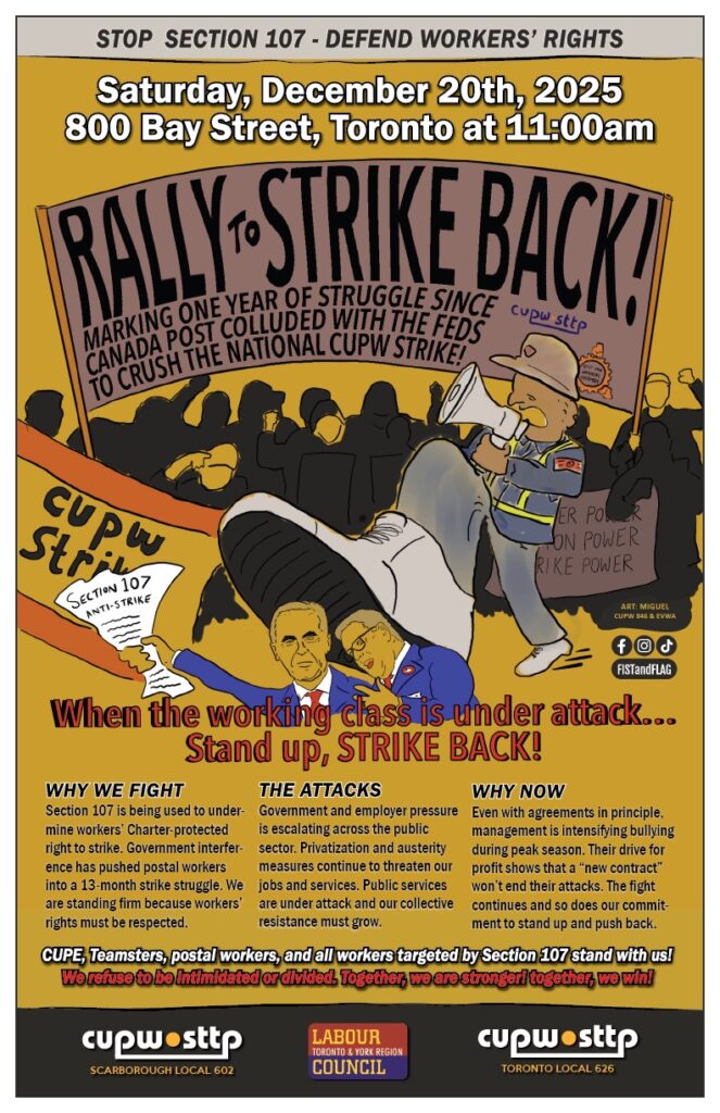 - The attacks against CUPW and other unions’ bargaining rights have prompted a strong pushback from the labour movement.