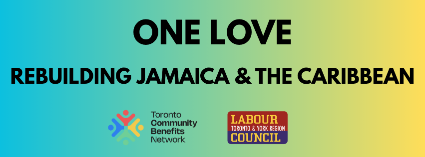 This is not an overnight fix. Today, we invite labour to stand with our community partners, including the Toronto Community Benefits Network (a partner organization of the Toronto & York Region Labour Council), to develop a strategy to bring aid and help rebuild not just Jamaica, but also the other Islands impacted by this force of nature.